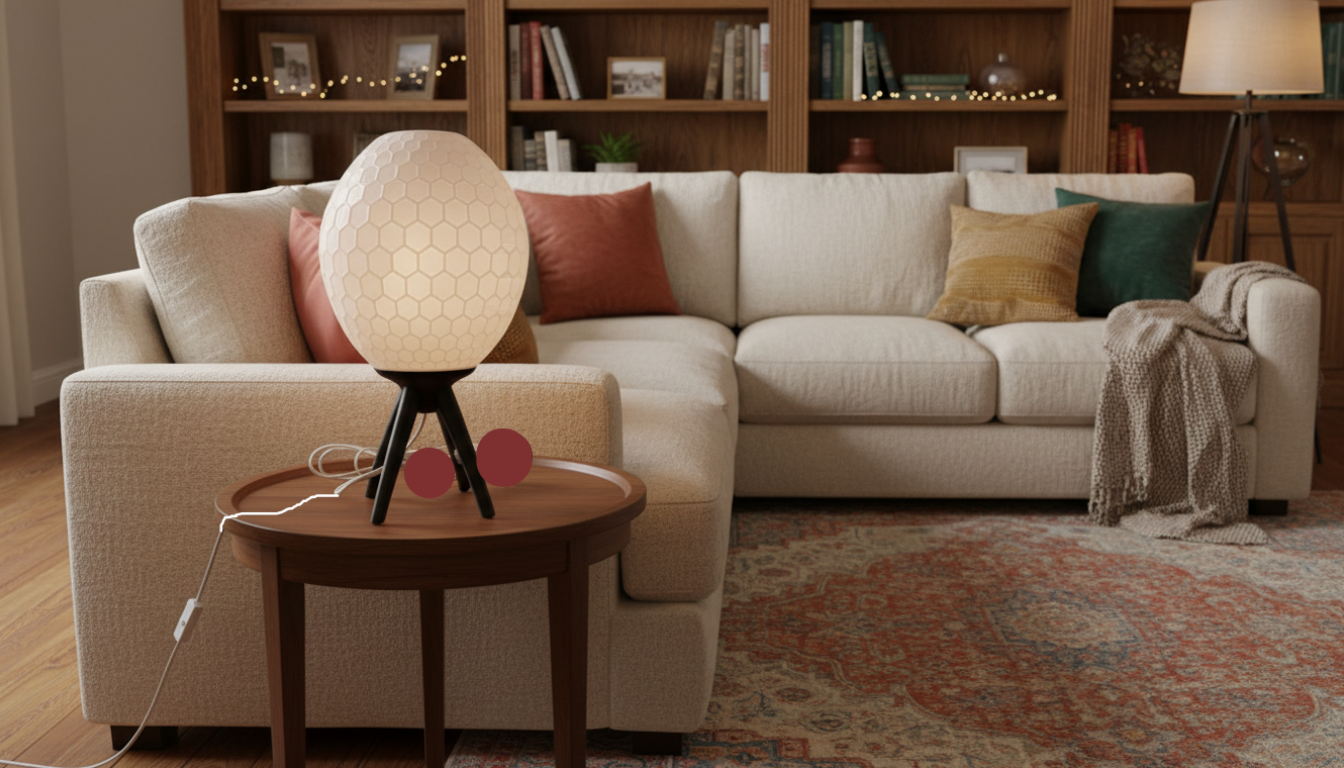 Precision-engineered 3D printed tabletop lamp featuring a distinctive tripod base design. This contemporary lighting solution combines functional aesthetics with innovative manufacturing, delivering great illumination for desks, shelves, and accent spaces. The geometric tripod structure provides stable support while maintaining a minimalist profile. Ideal for creative professionals and design enthusiasts seeking statement lighting that merges form with practicality.