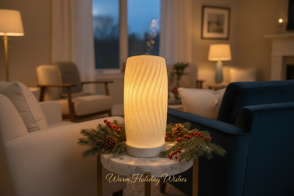 Elevate your space with this striking 3D-printed tabletop lamp, where contemporary design meets functional artistry. The undulating wave pattern creates visual depth while maintaining clean, minimalist aesthetics—perfect for bedside tables, desks, or accent shelving. Crafted through precision 3D printing, each piece showcases meticulous detail and modern craftsmanship. The sculptural form diffuses light beautifully, casting subtle shadows that enhance any room's ambiance. An ideal choice for design-conscious individuals seeking statement lighting that balances form and purpose.